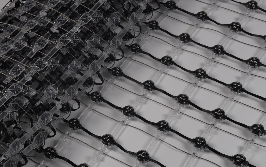 | برجسته کردن | پرده مش LED قابل انعطاف شفاف,پرده مش LED IP67,صفحه نمایش LED انعطاف پذیر 12 ولت |